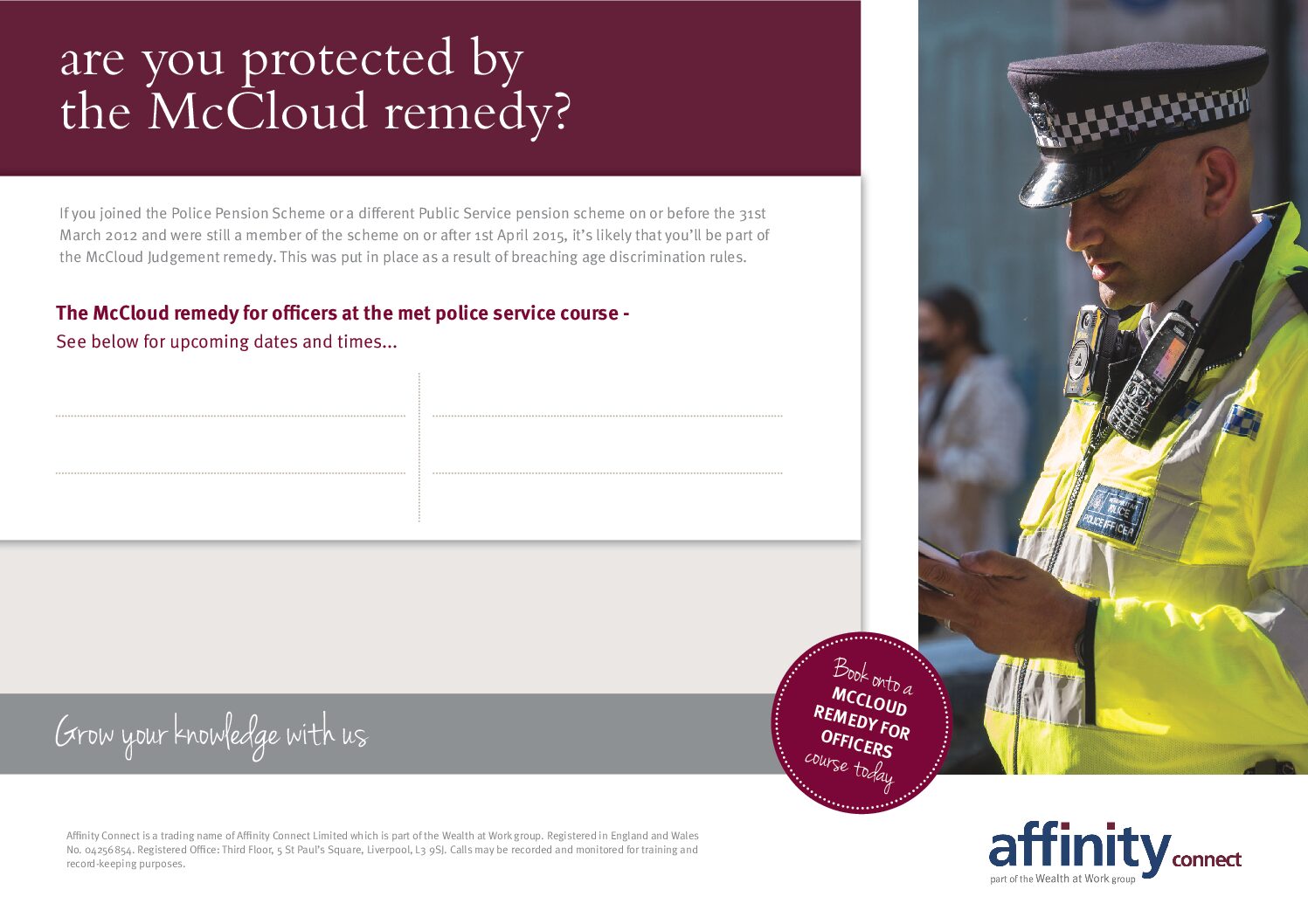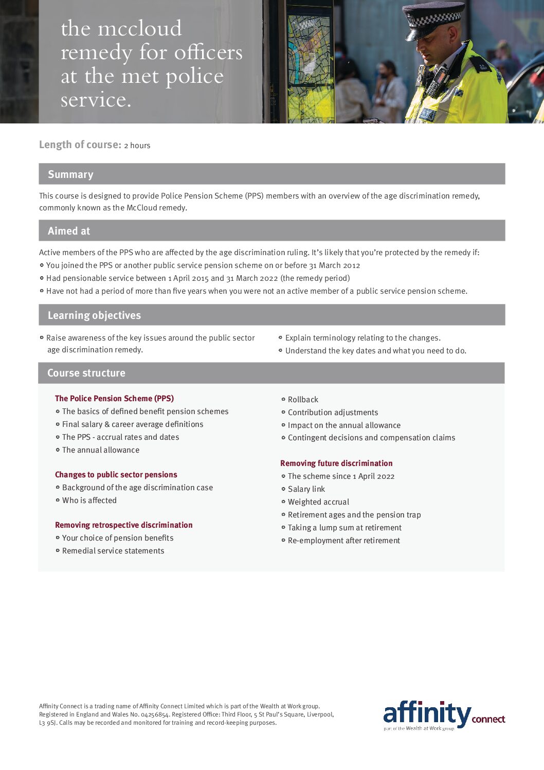 Met Police Pension Scheme course poster – editable