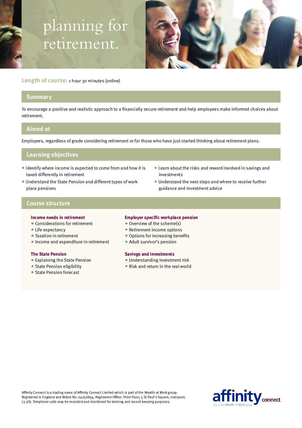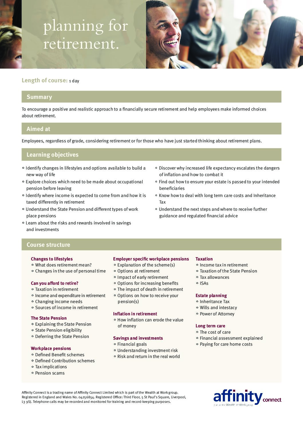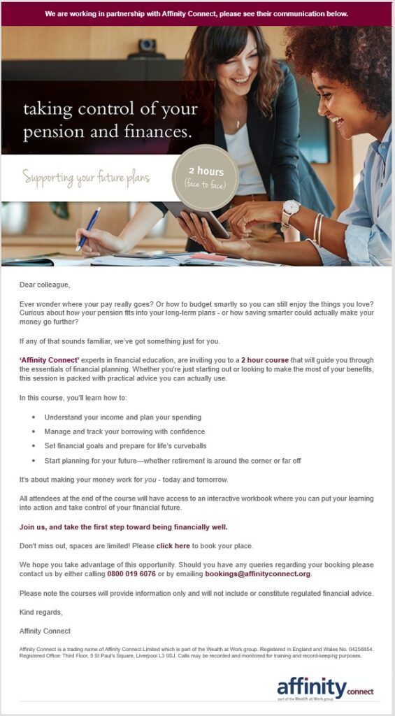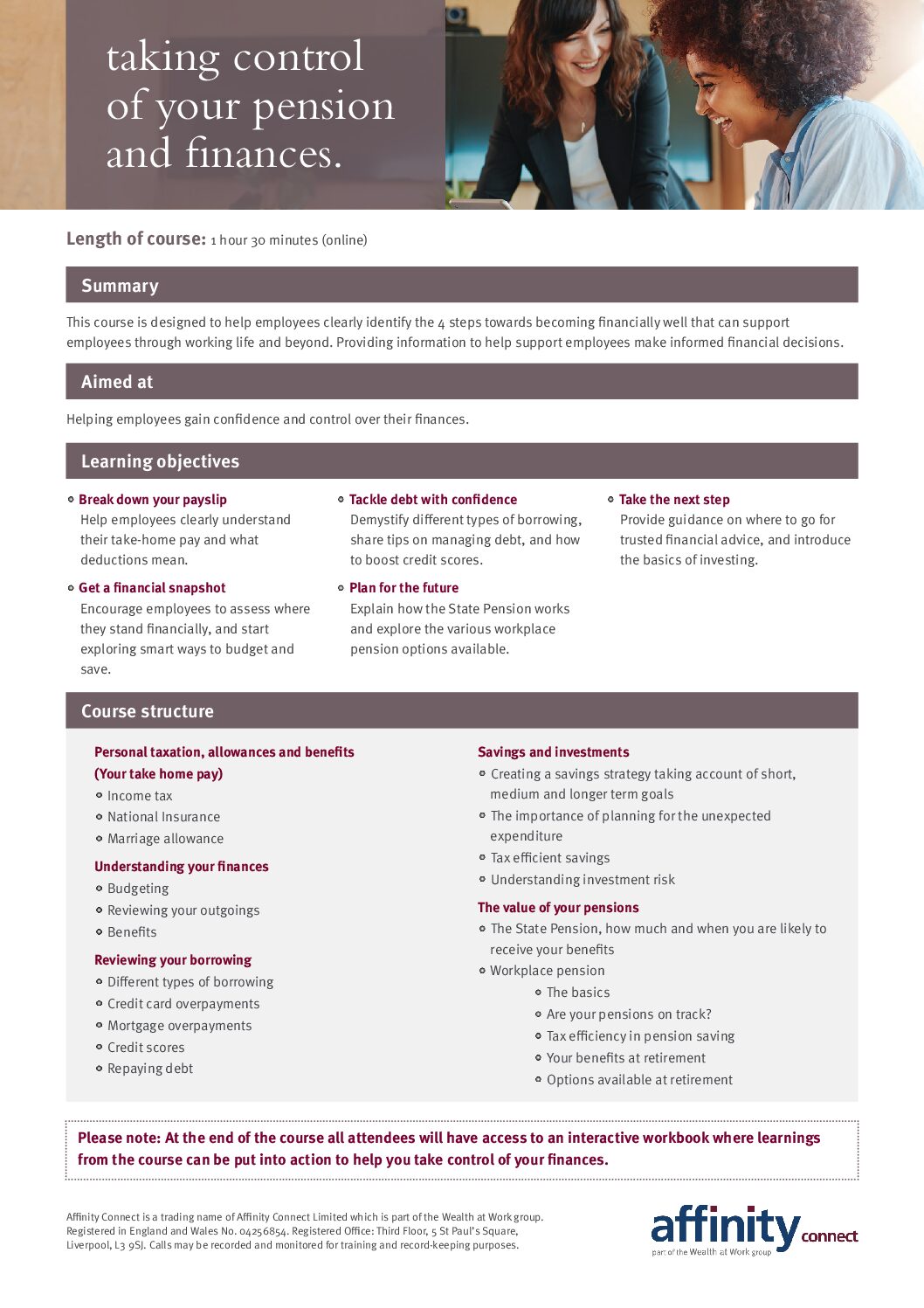 Taking control of your pension and finances course agenda – face to face
