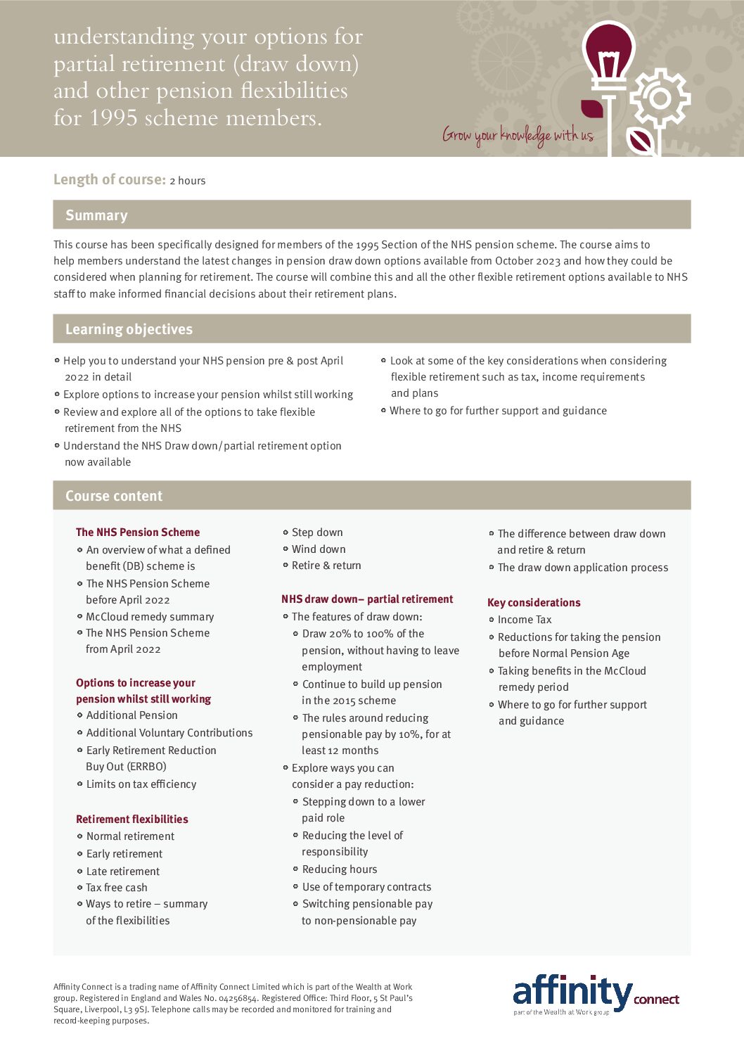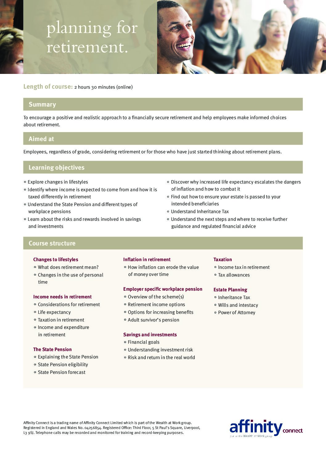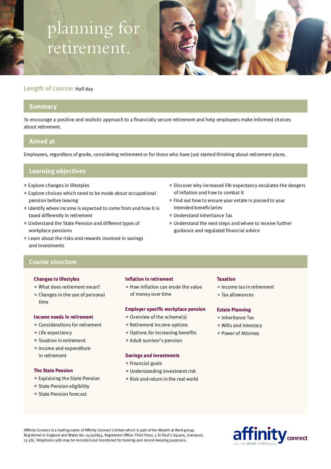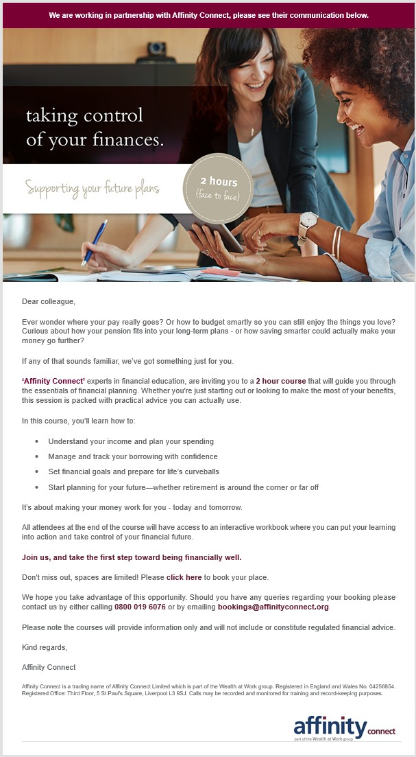 Taking control of your pension and finances course agenda – face to face