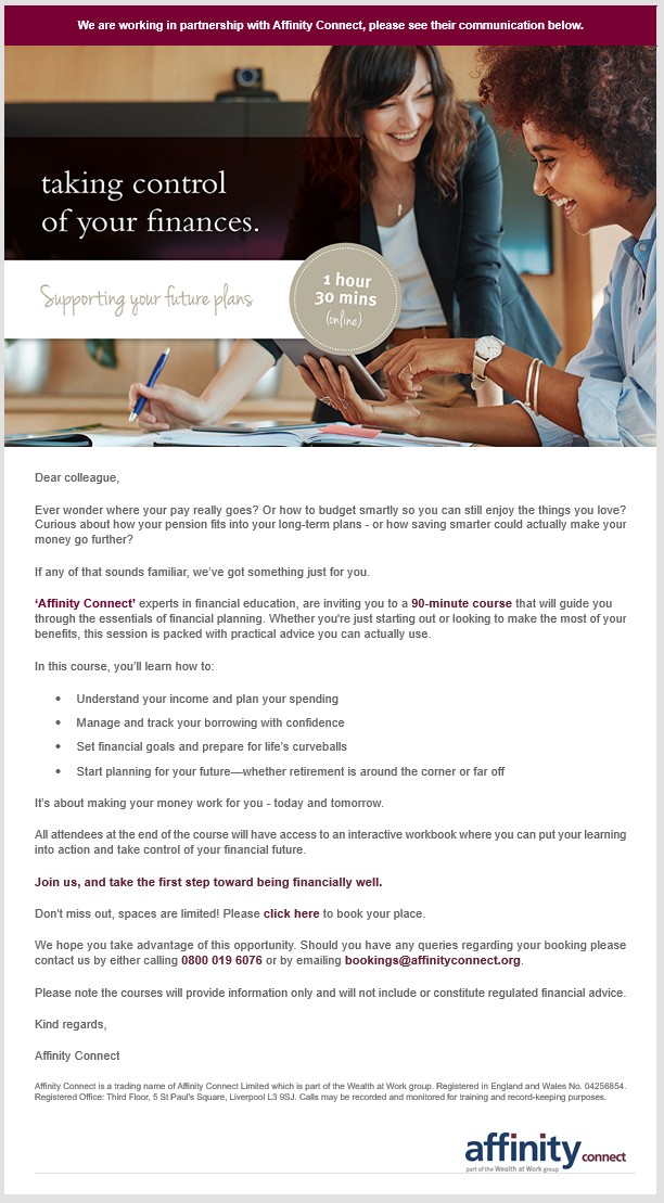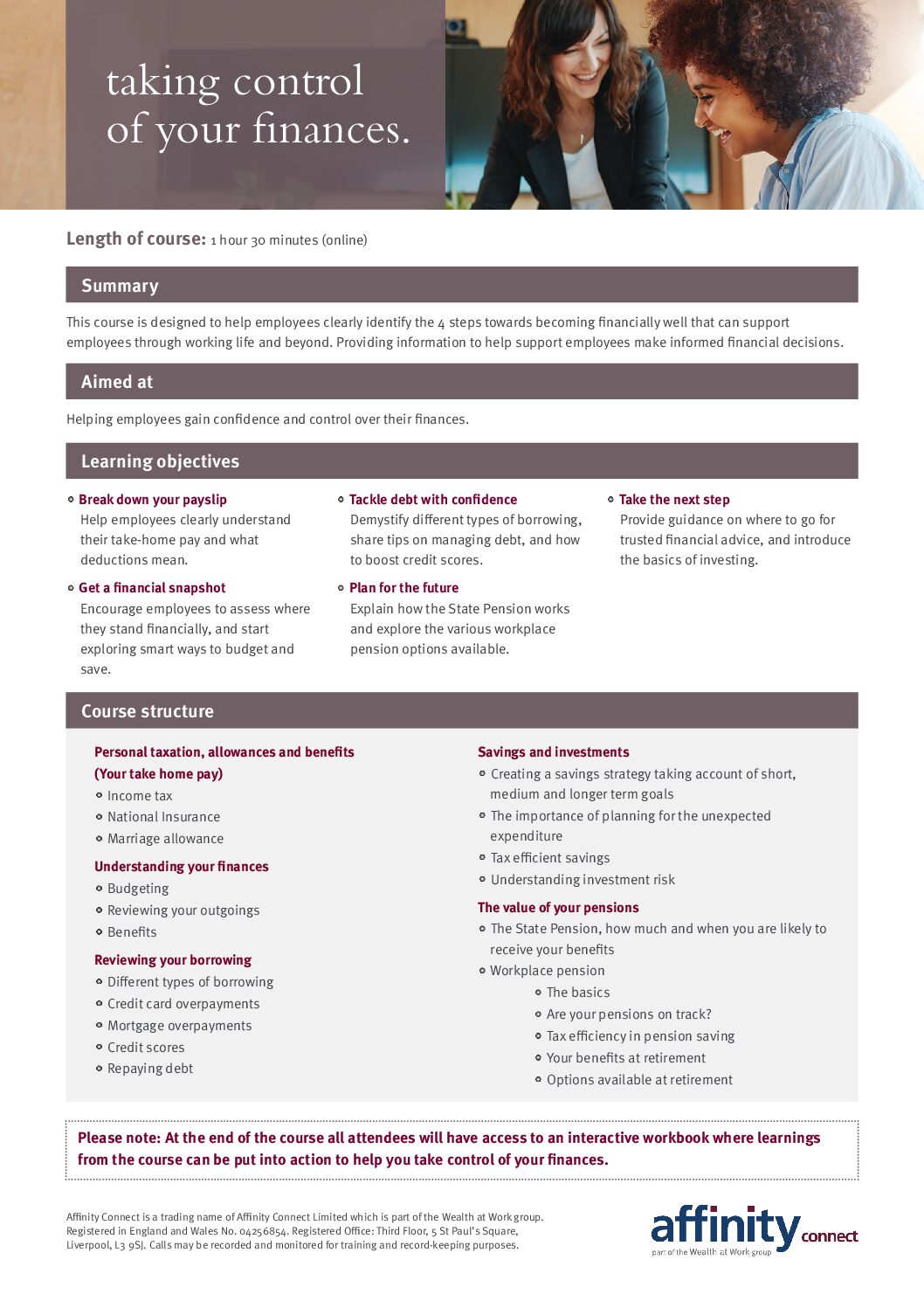 Taking control of your finances course agenda – online