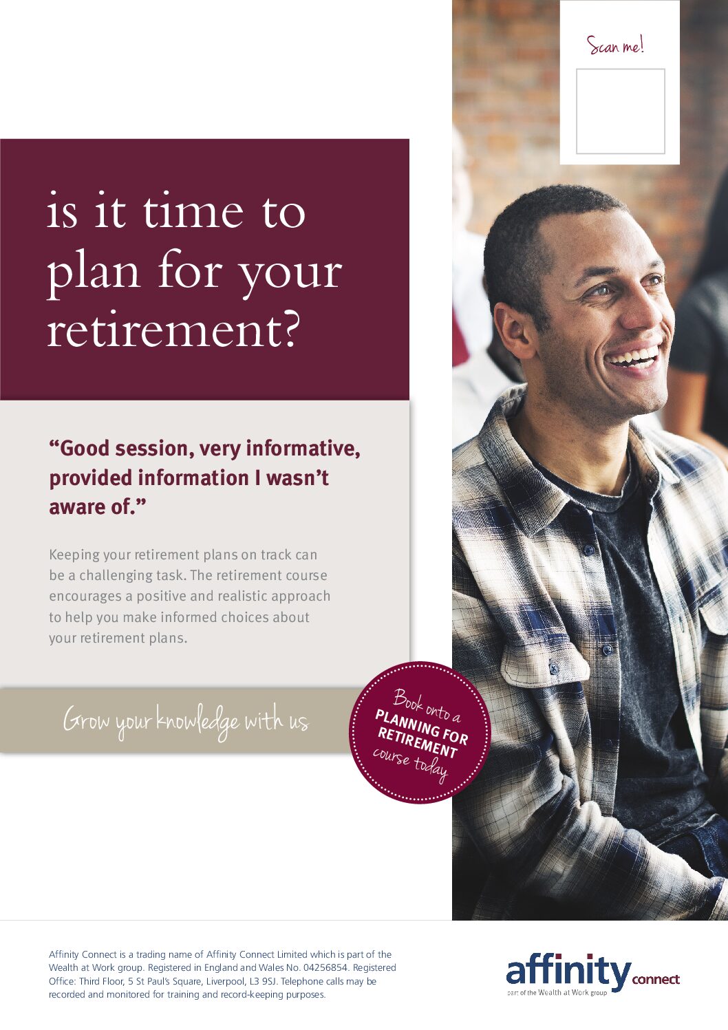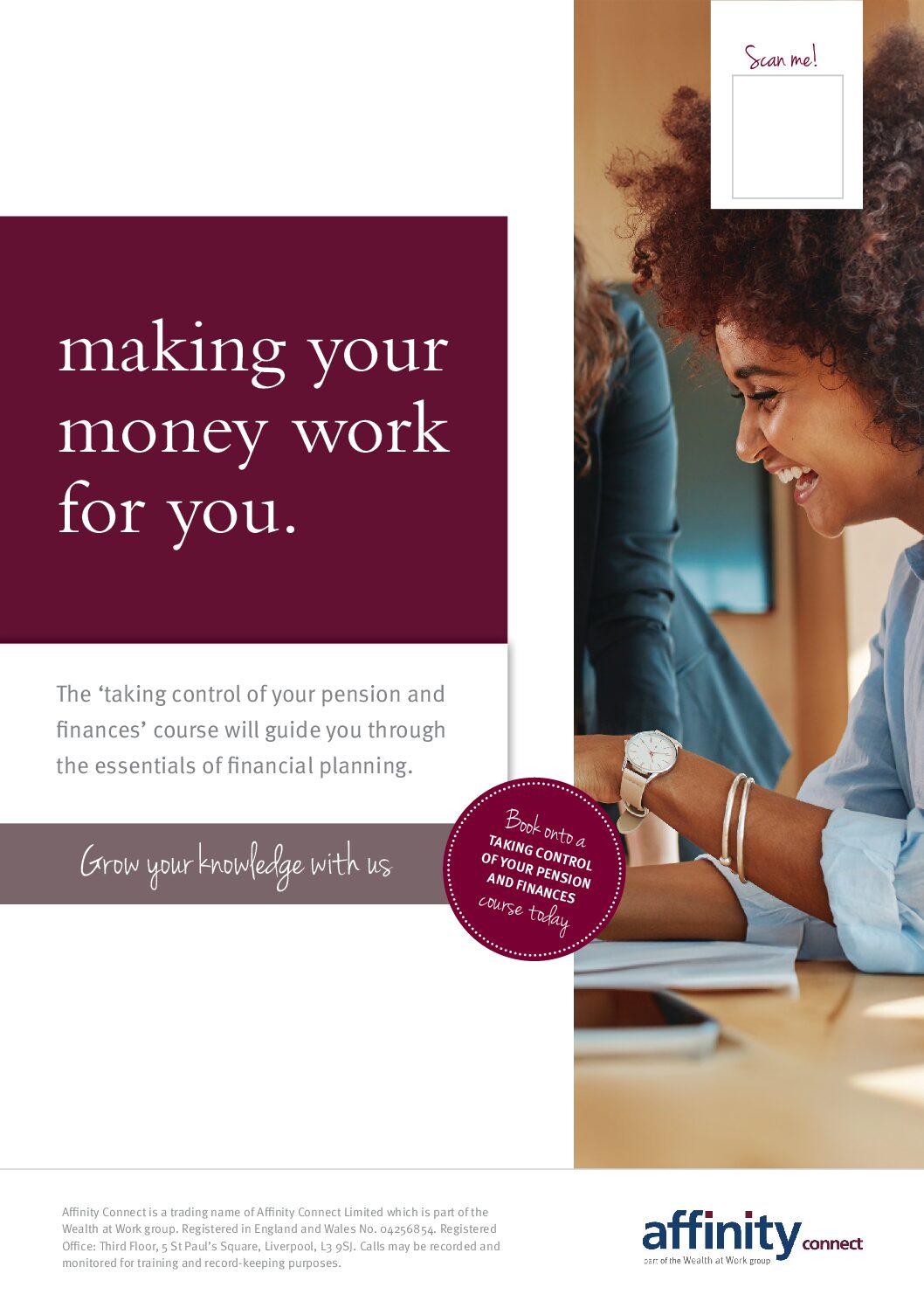 Taking control of your pension and finances course poster – QR code