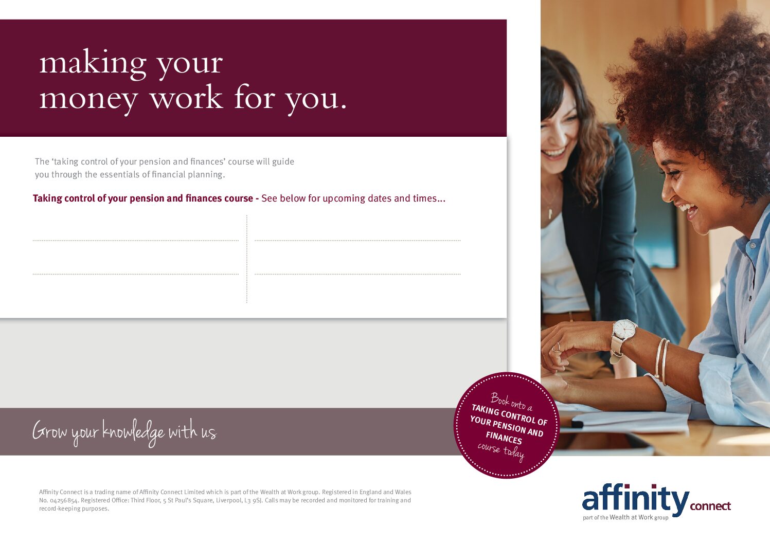 Taking control of your pension and finances course poster – editable